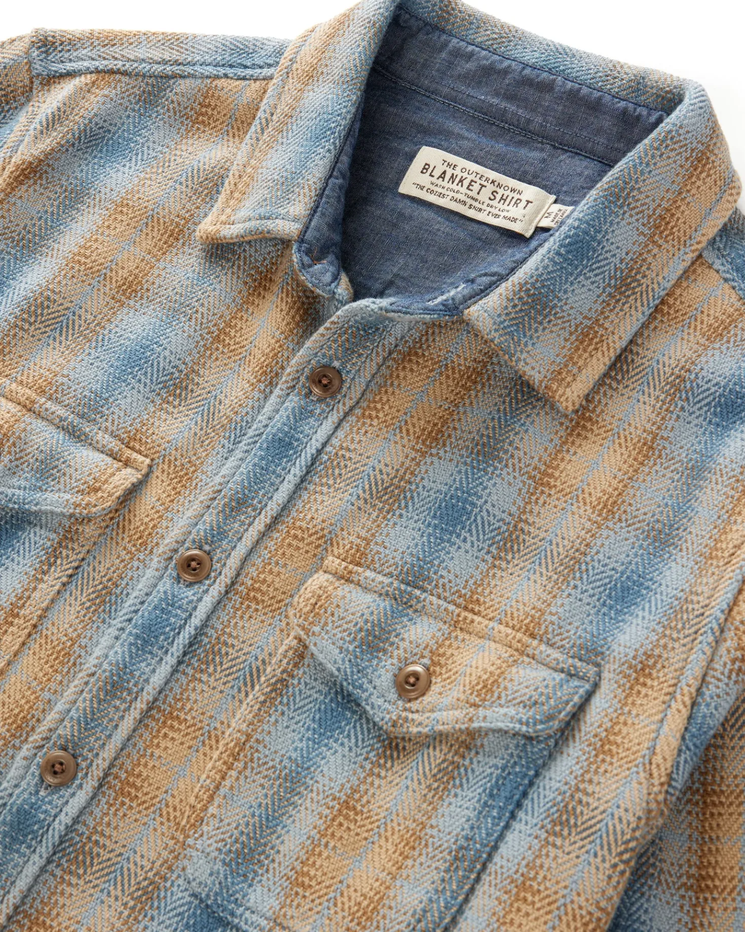 Crafted from a soft, lofty organic cotton twill with buttons made from nuts.