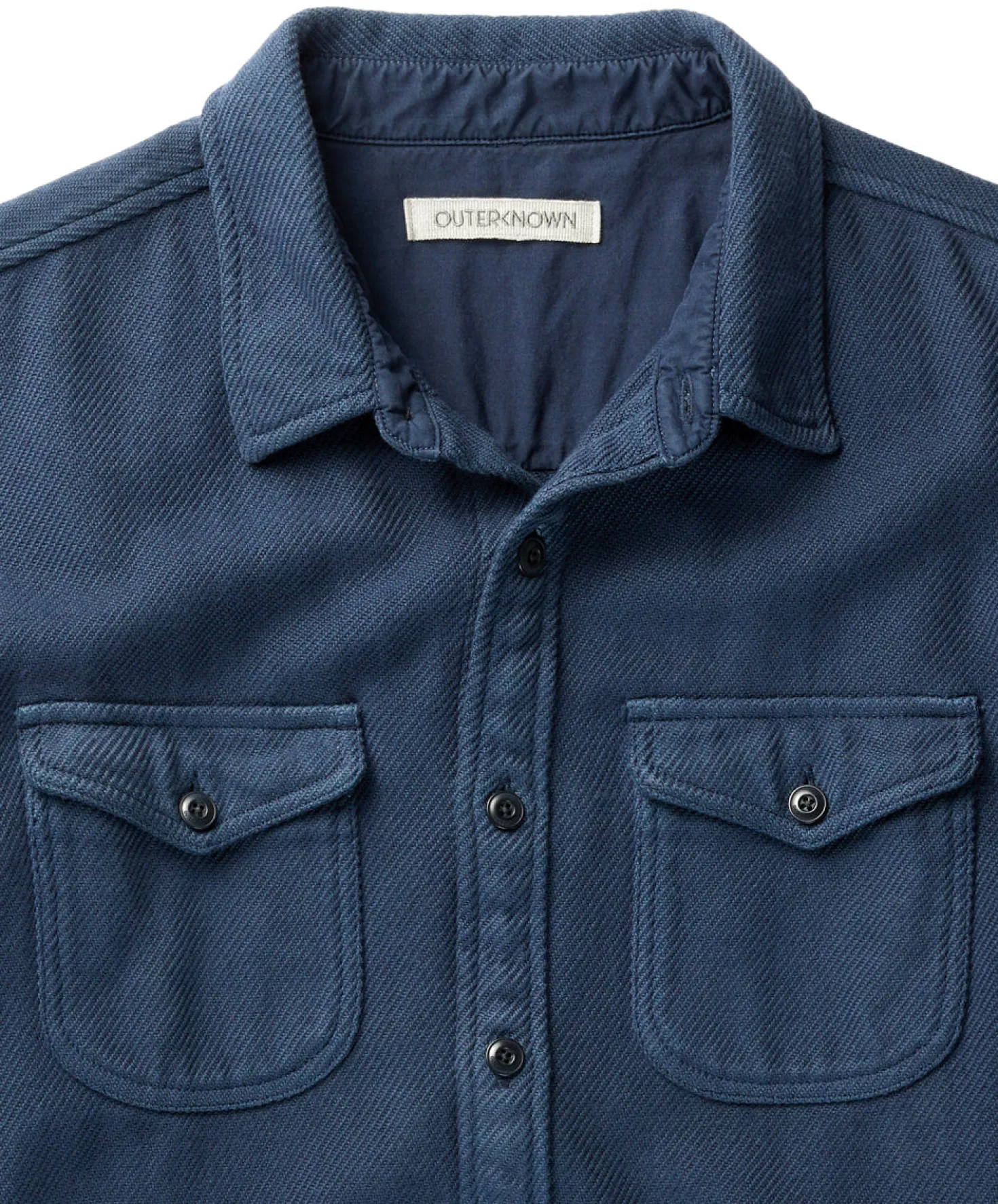 - Chest pockets with button flap pockets and an organic cotton yoke.