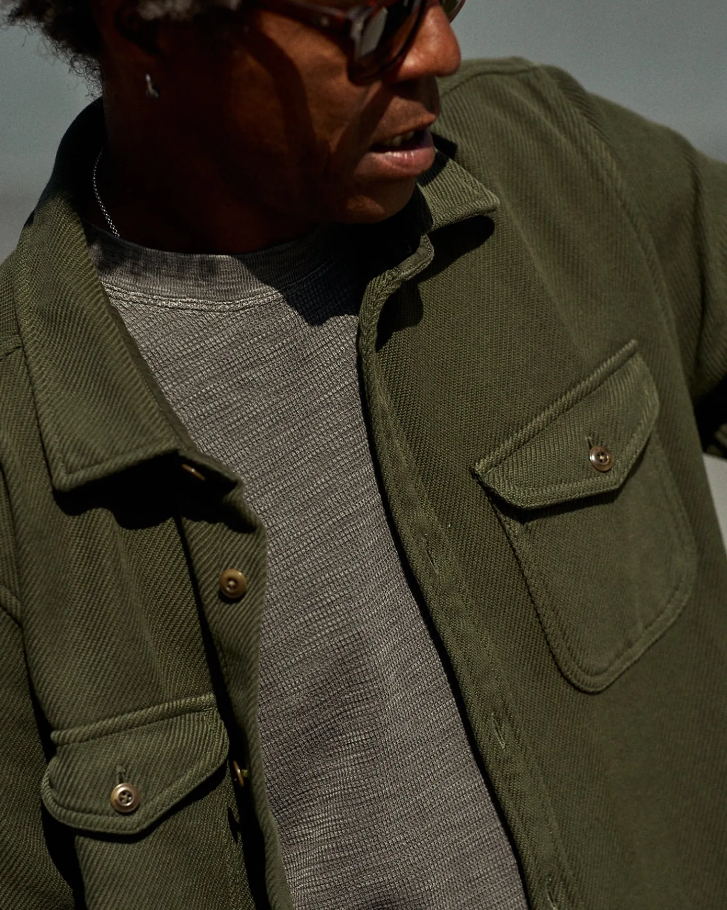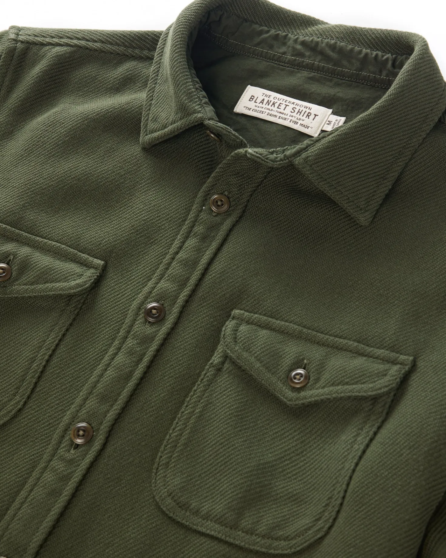 Crafted from a soft, lofty organic cotton twill with buttons made from nuts.