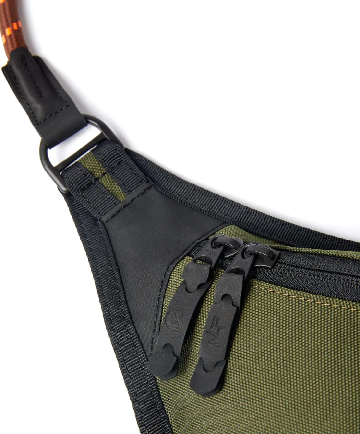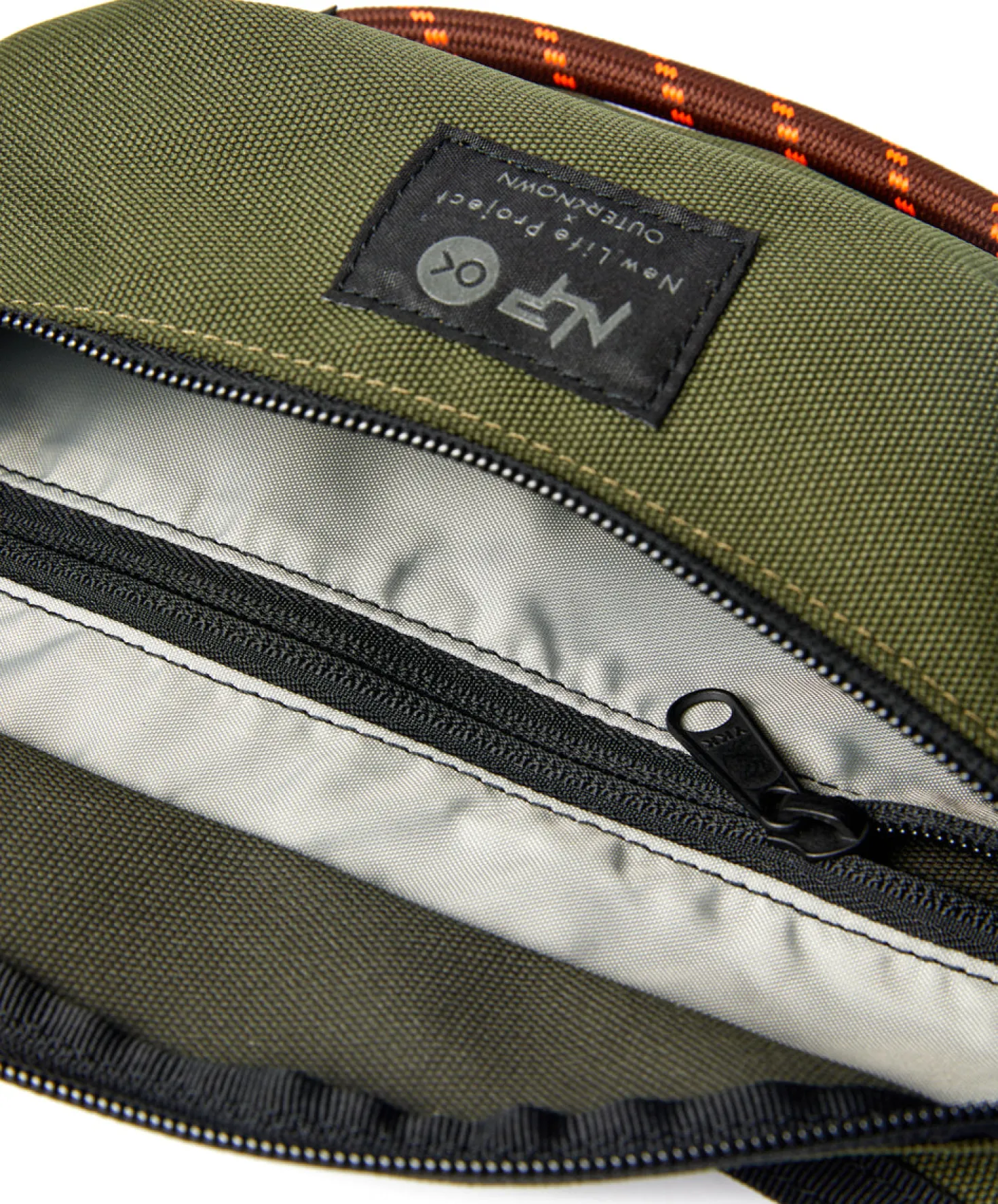 Endlessly versatile hip pack/cross-body bag from the latest collaboration between Outerknown x The New Life Project, an original assortment of sustainable travel accessories that stand up to the wear and tear of the road.