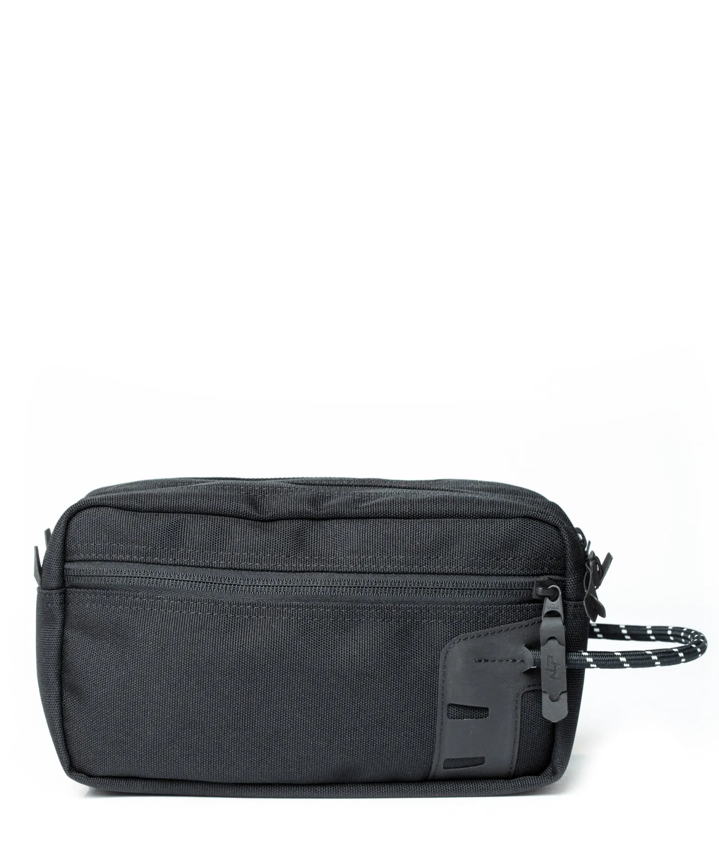 - Double-zip travel pouch with an easy-grab phosphorescent rope handle and internal organization pockets.