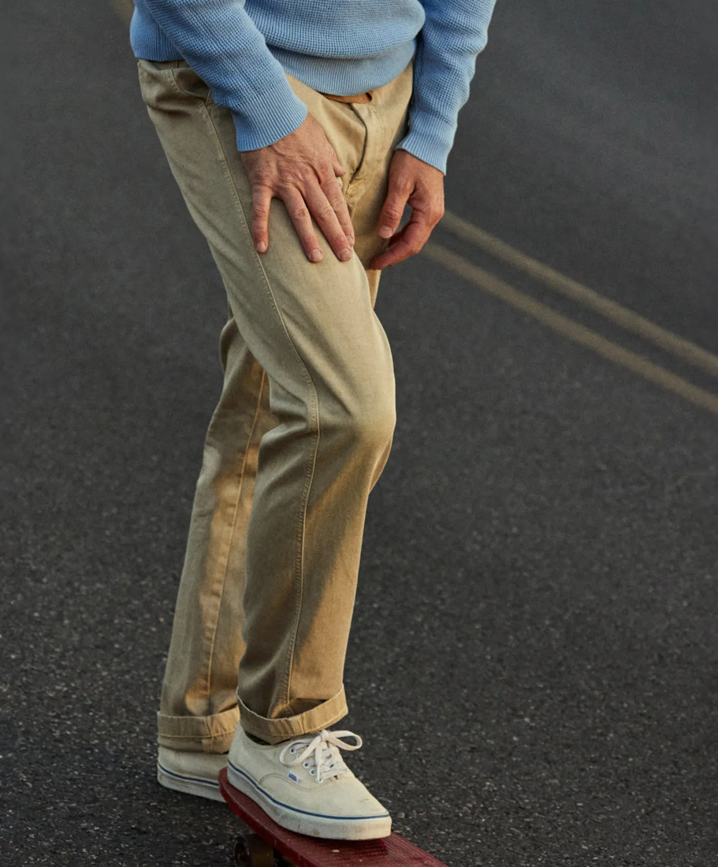 - Classic straight leg chinos with a slight taper.