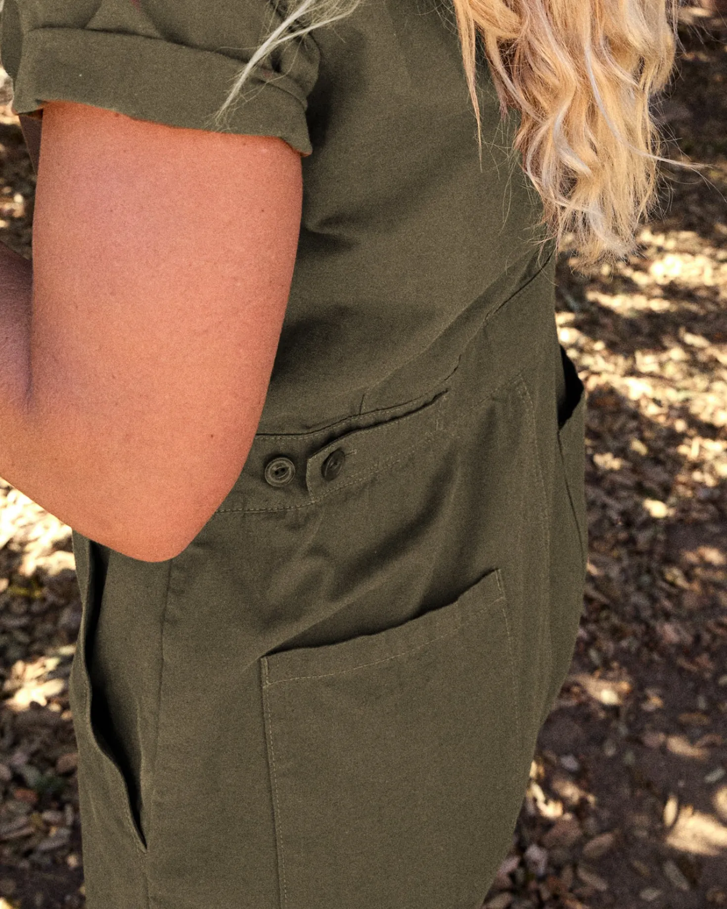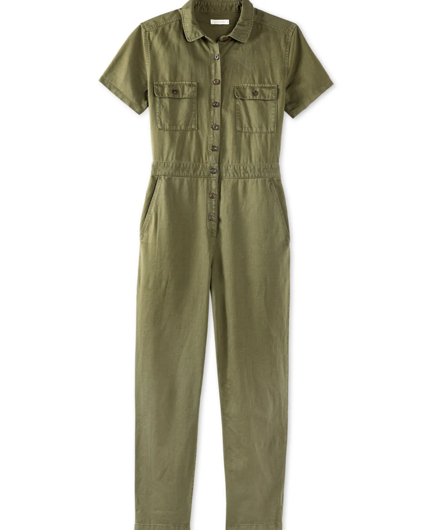 - Feminine detailing includes a rounded collar, adjustable waistline and tapered leg that looks great rolled up too!
