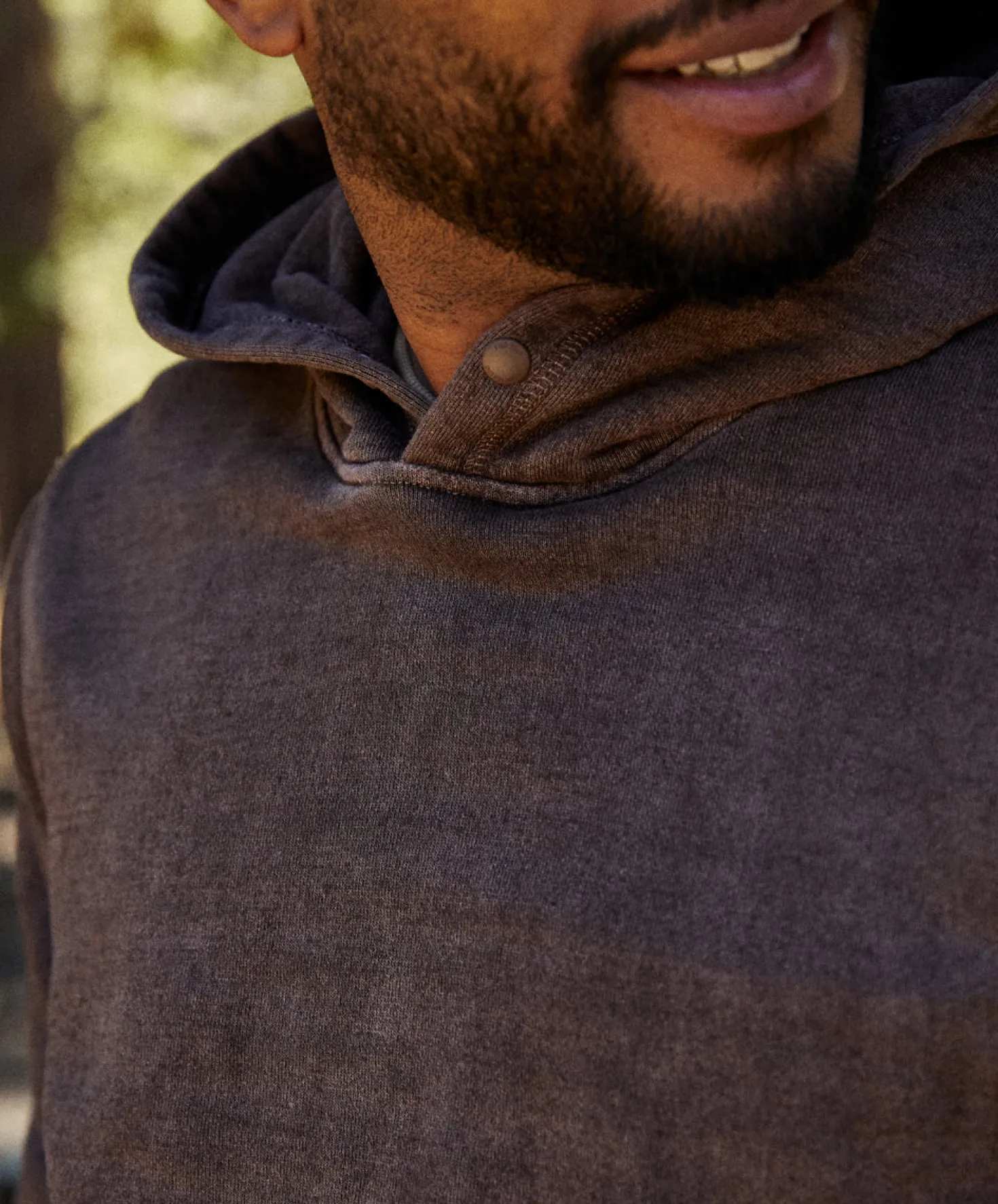 The classic hoodie reimagined. We swapped the bulky kangaroo pouch for on-seam pockets and added a rubberized snap closure.