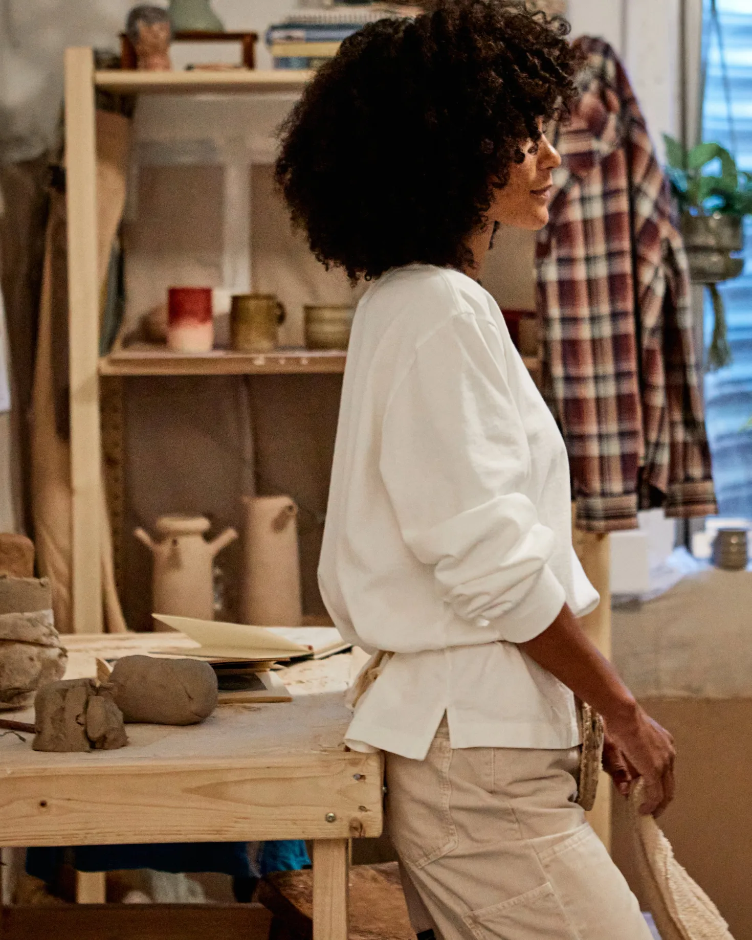 The same best-selling, heavier-weight Regenerative Organic Certified® cotton jersey tailored perfectly for women with side slits for a little more vibe.