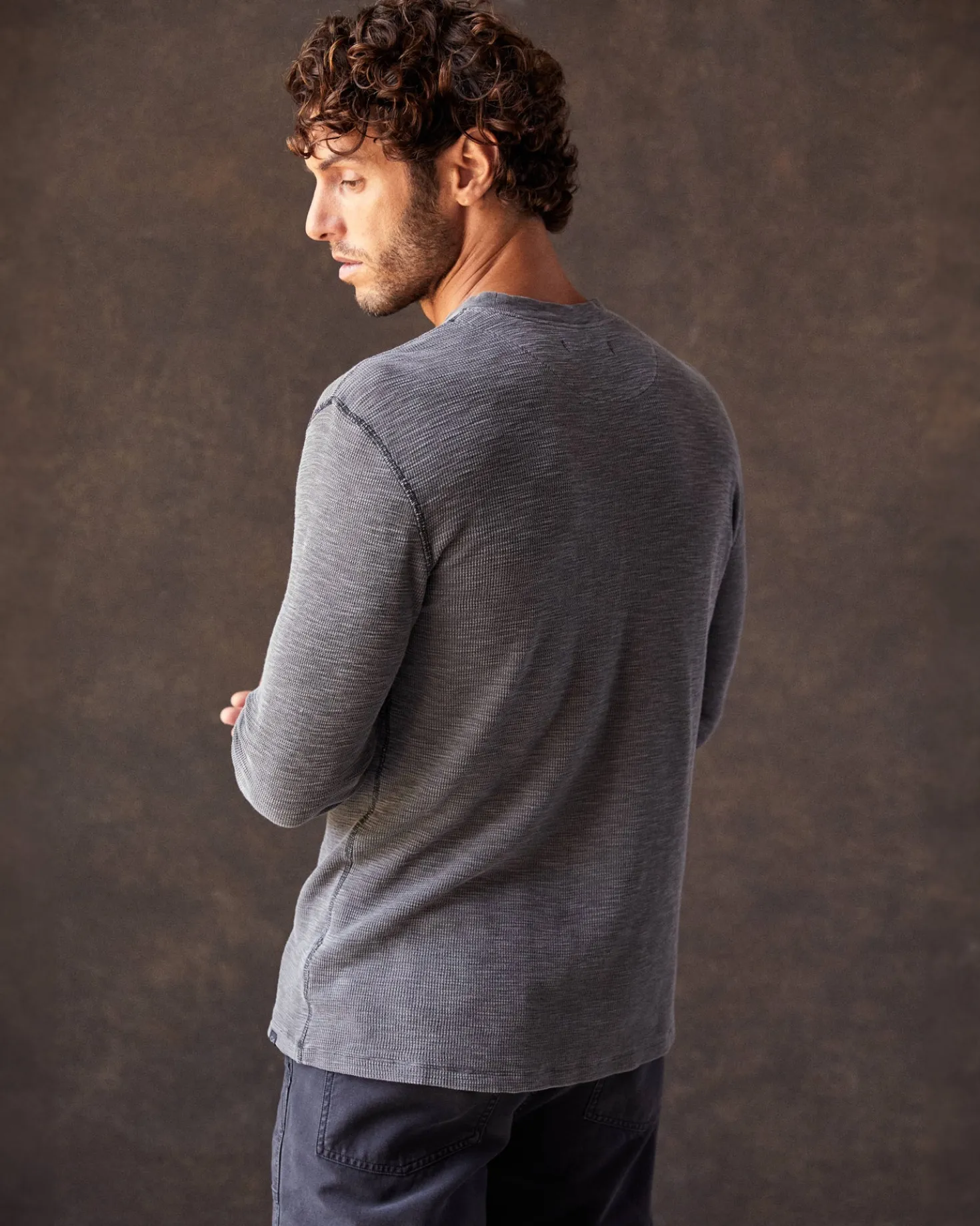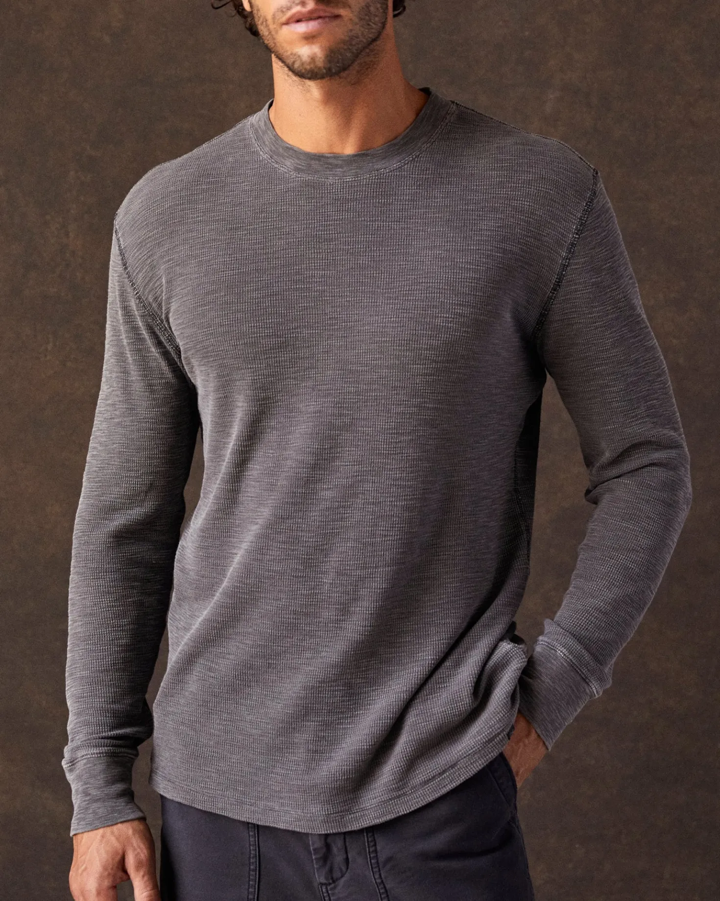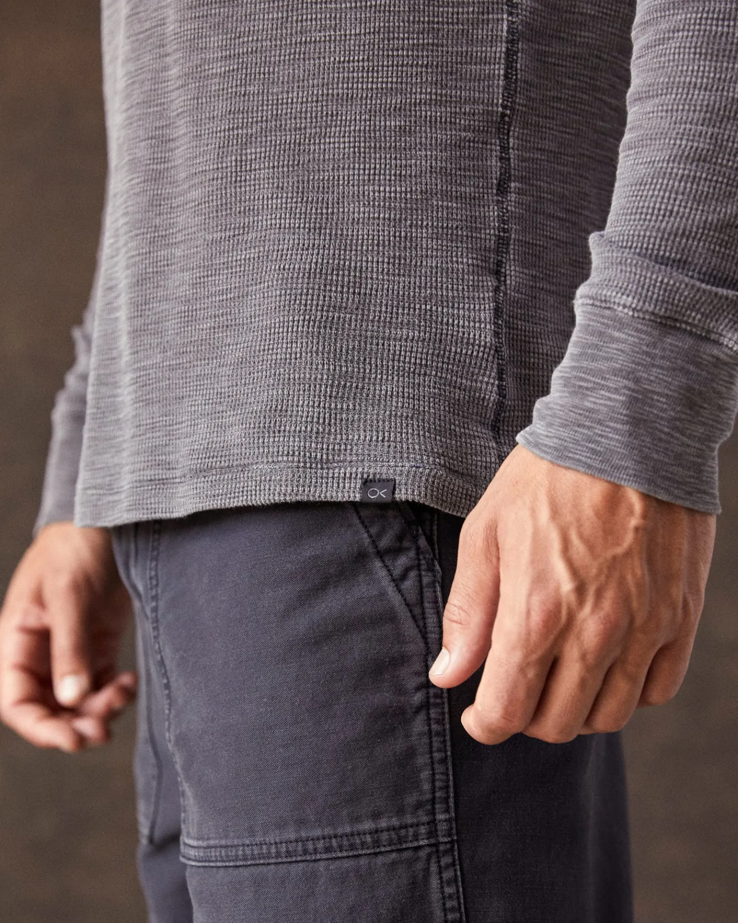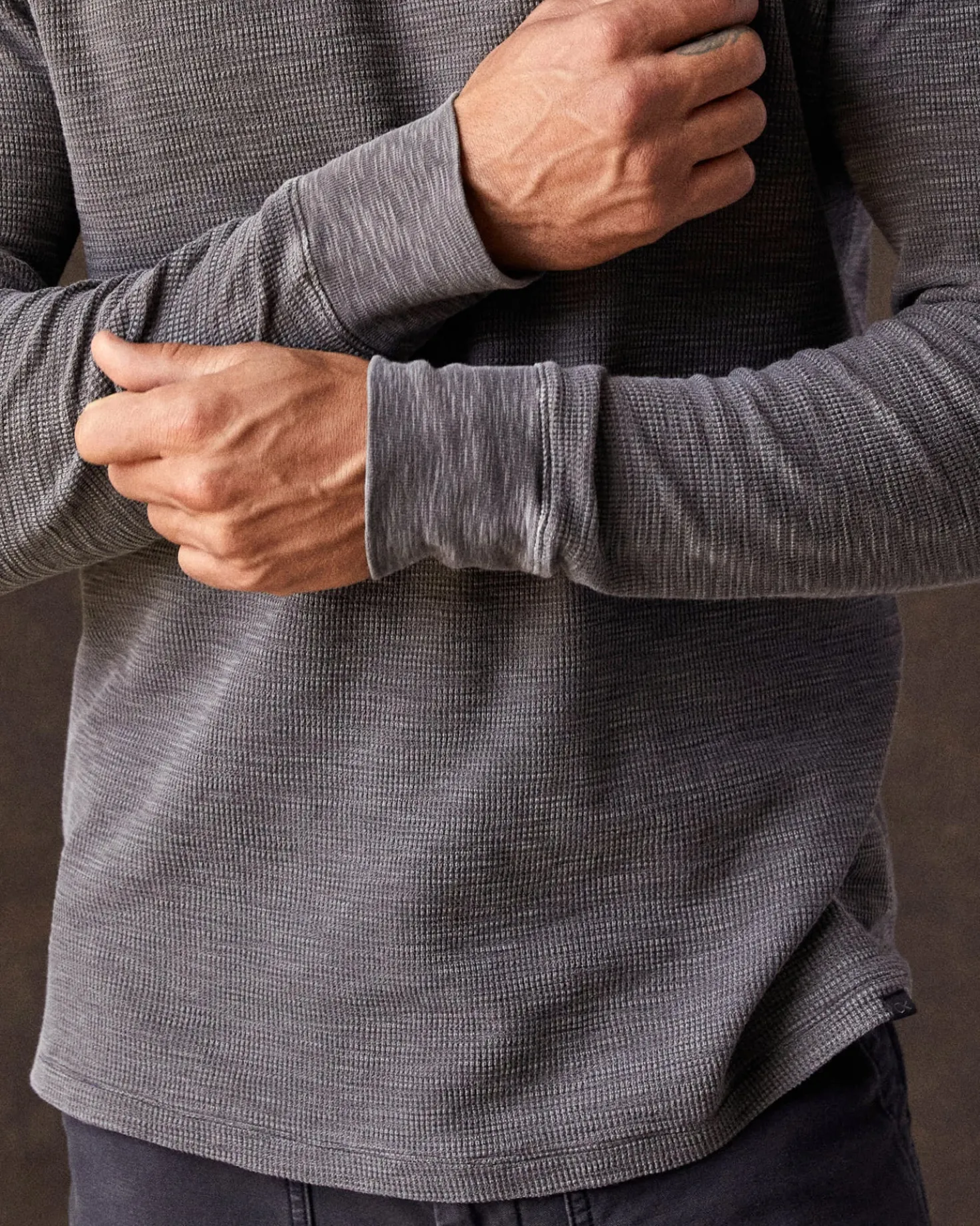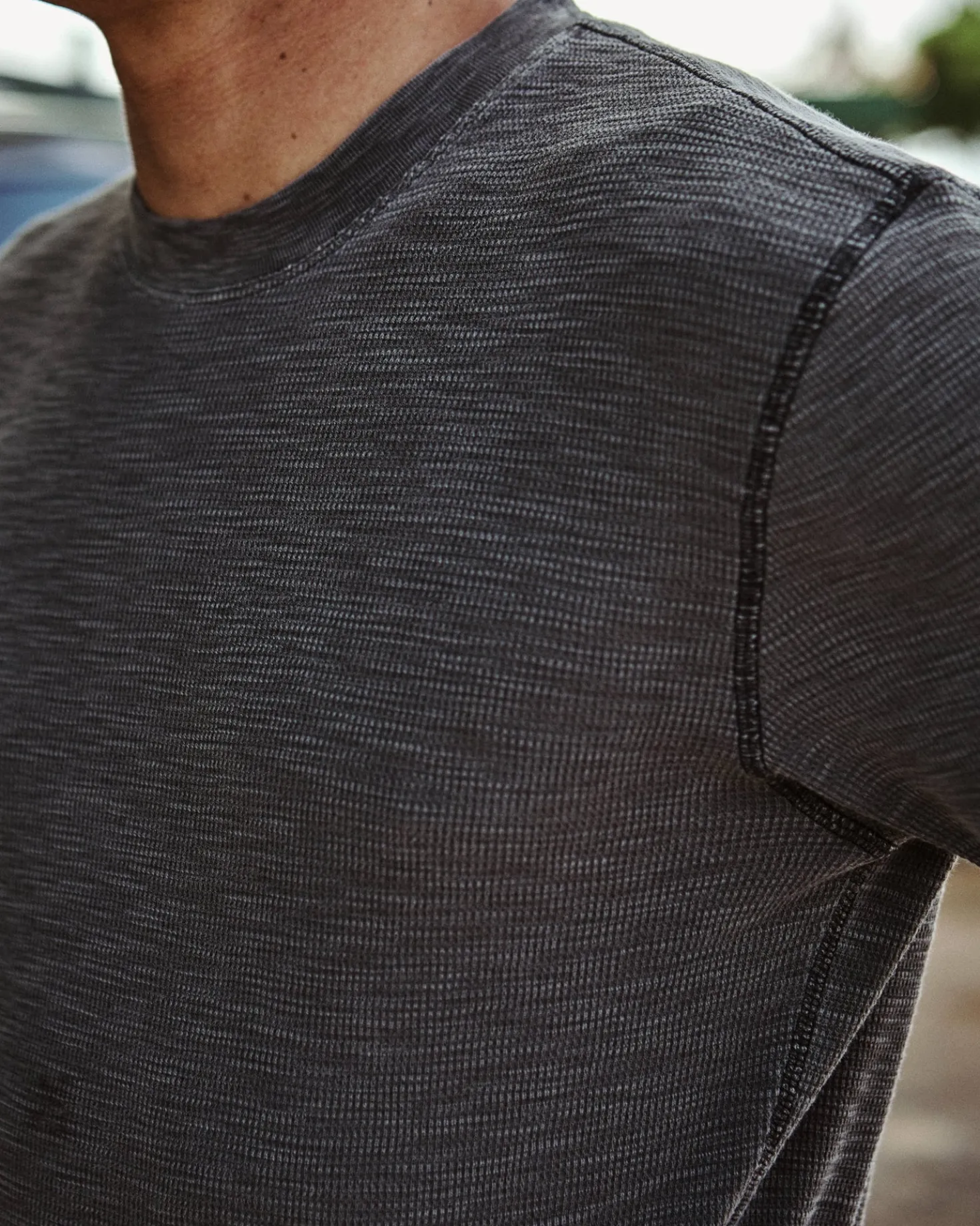 An essential cool weather layering piece you can wear under your Blanket Shirt or on its own. Constructed in a garment-dyed slub yarn for a worn-in look and feel with flat lock stitch detailing throughout.