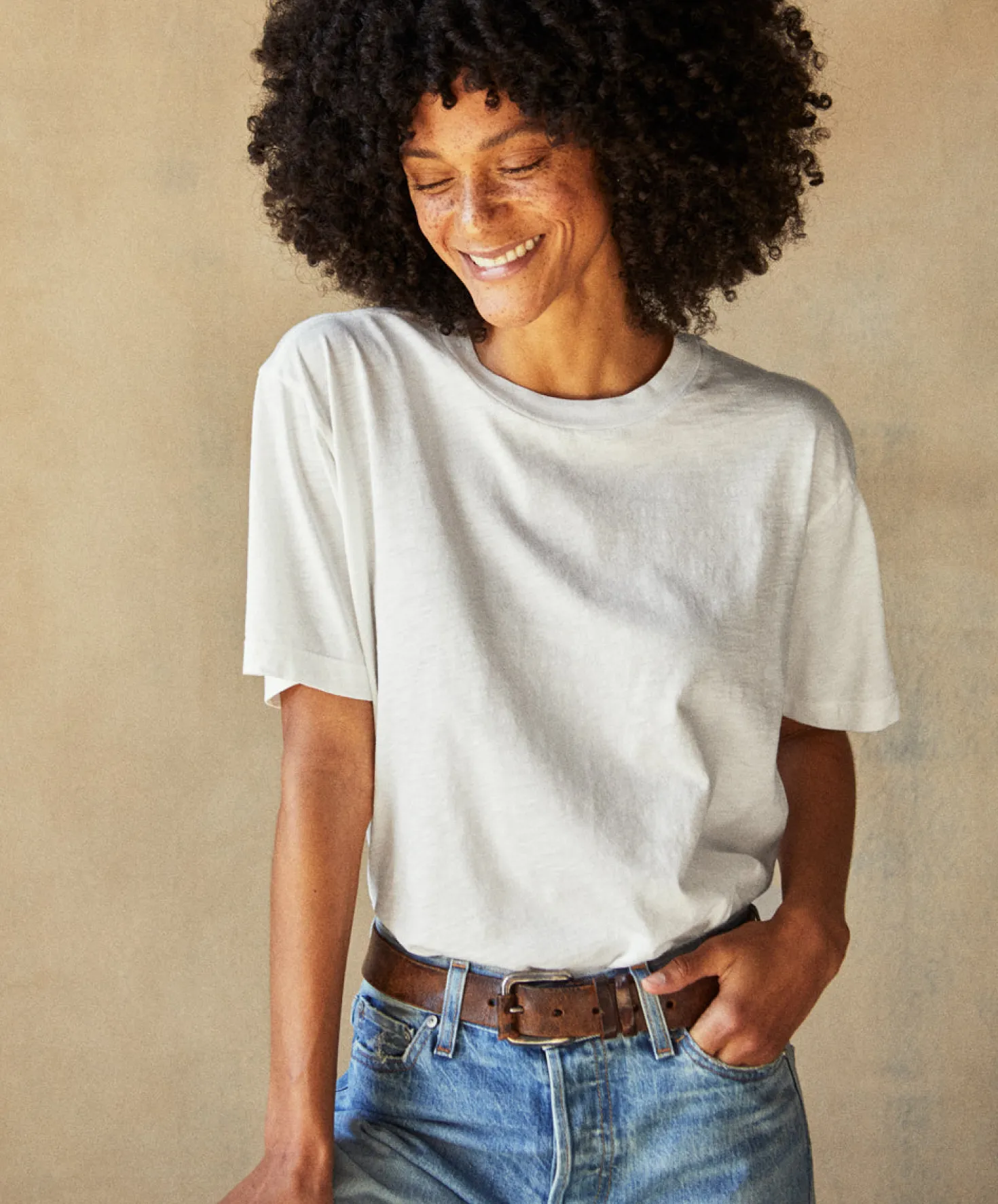Finally, our iconic super soft slub texture in a Women’s tee. A year-round closet staple you’ll have on heavy rotation. Crafted with Regenerative Organic Certified® cotton for a perfectly worn-in look and feel the moment you throw it on.