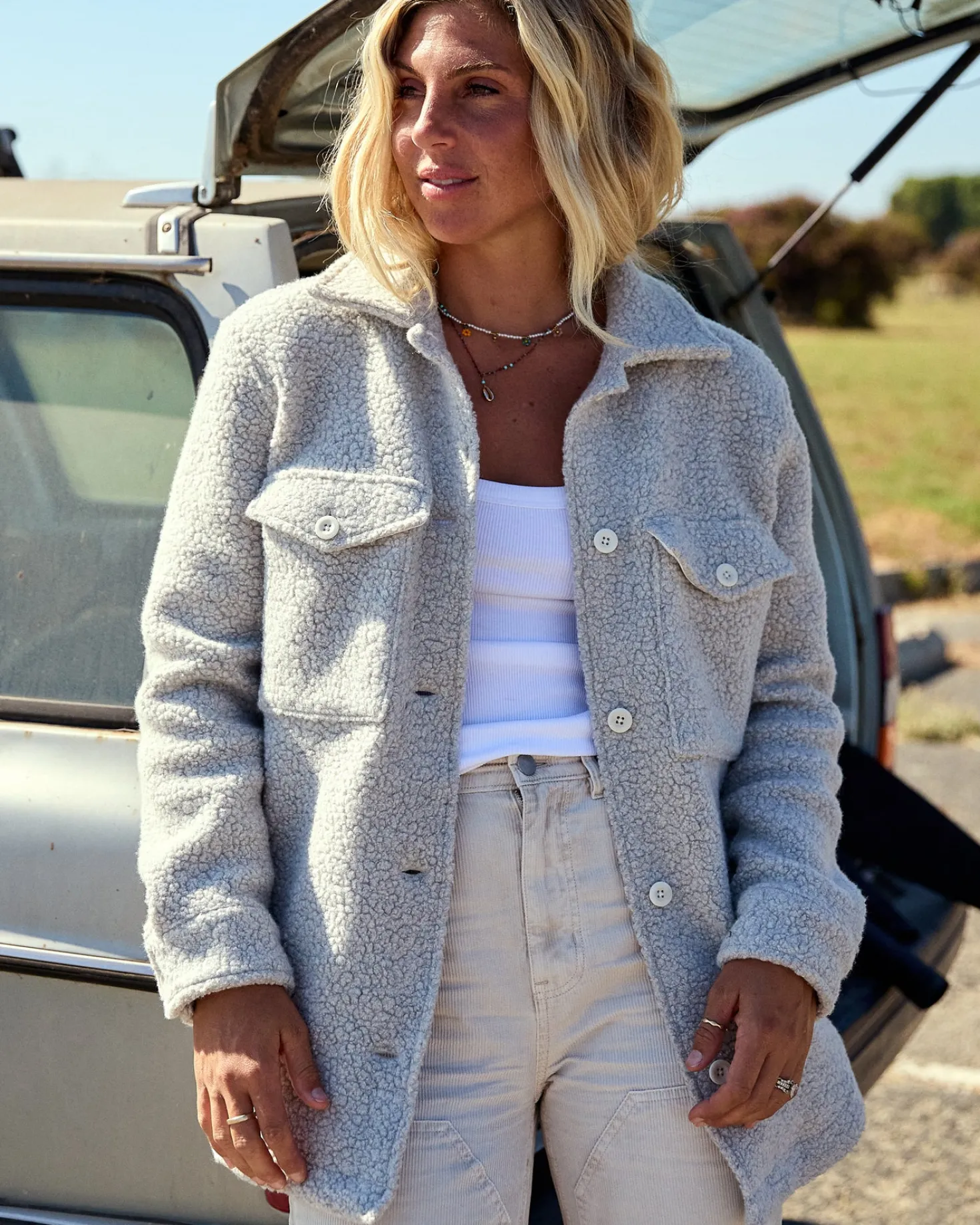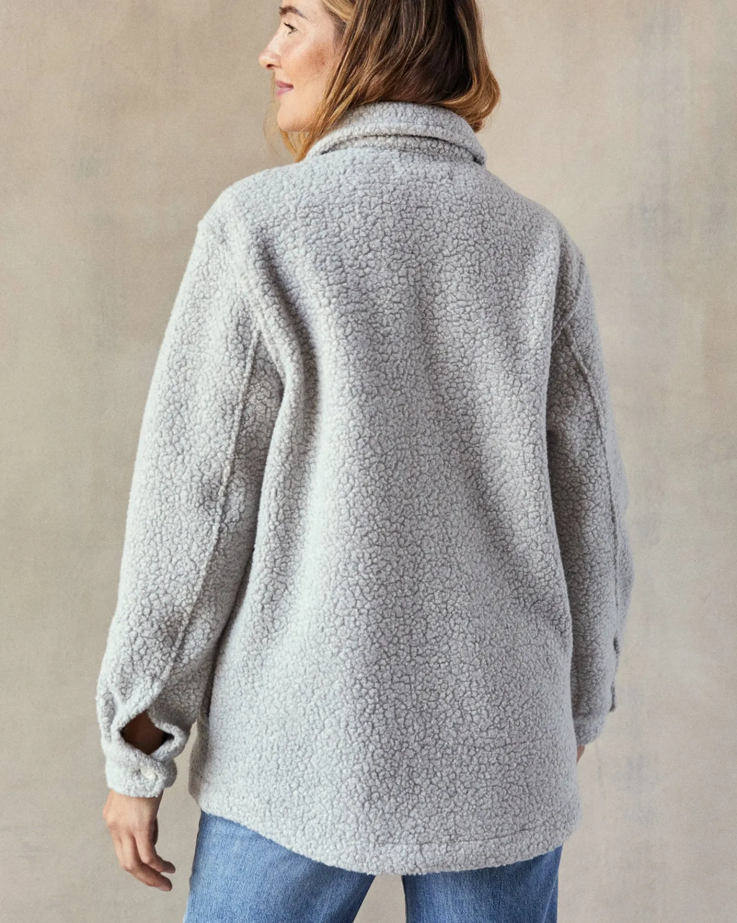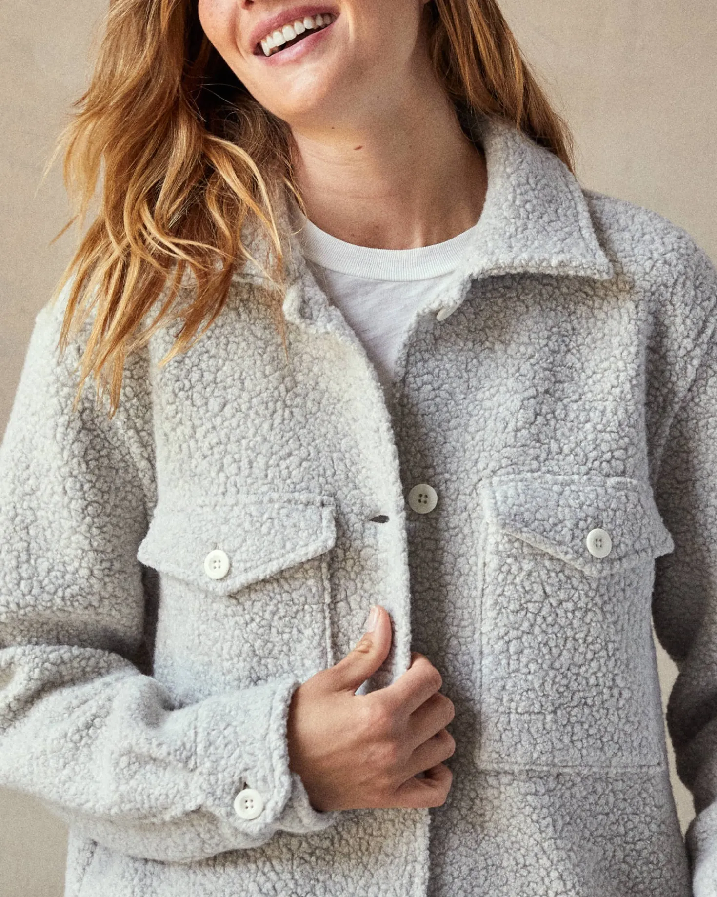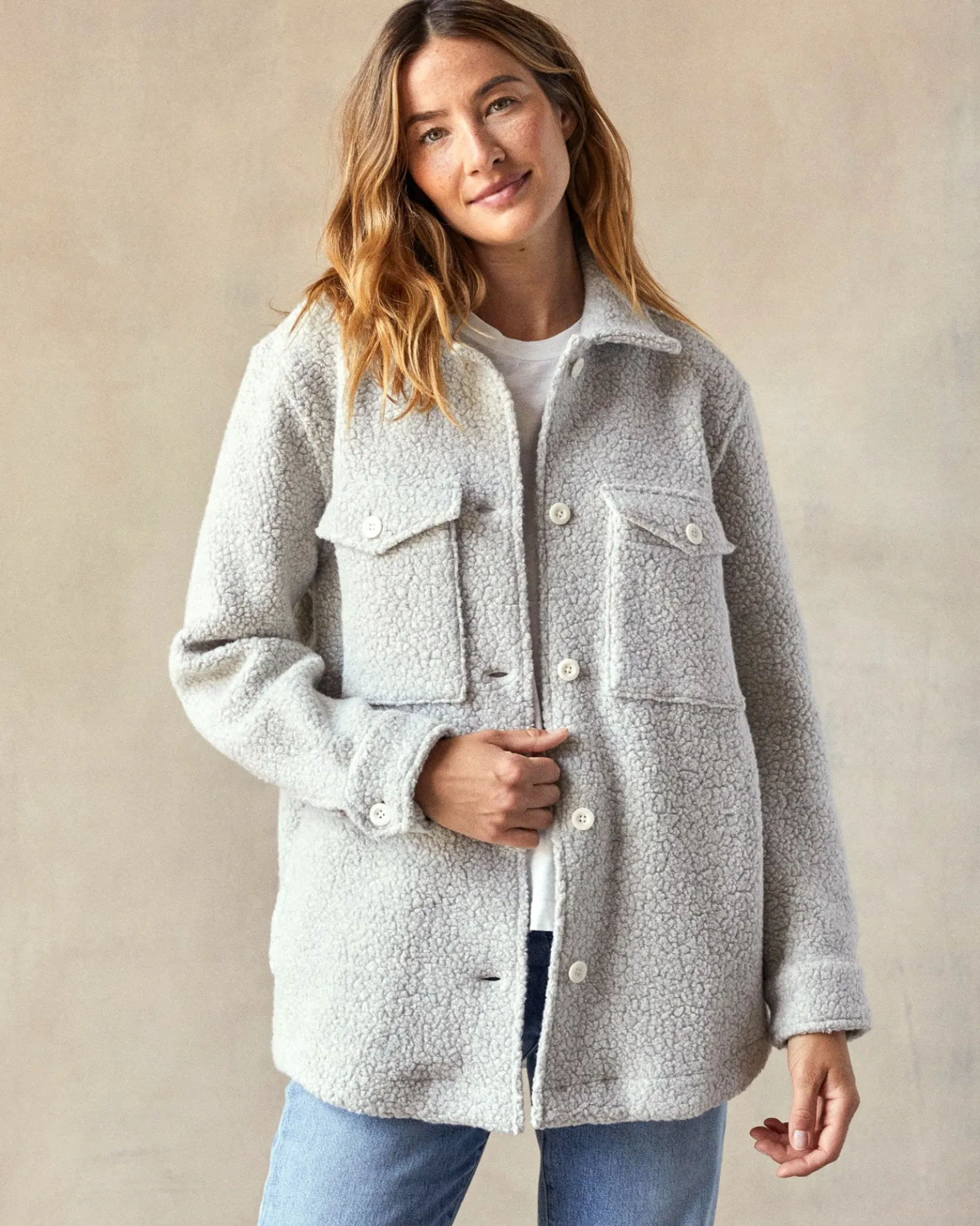 A relaxed shirt jacket that’s roomy enough for easy layering over all your cool-weather favorites.