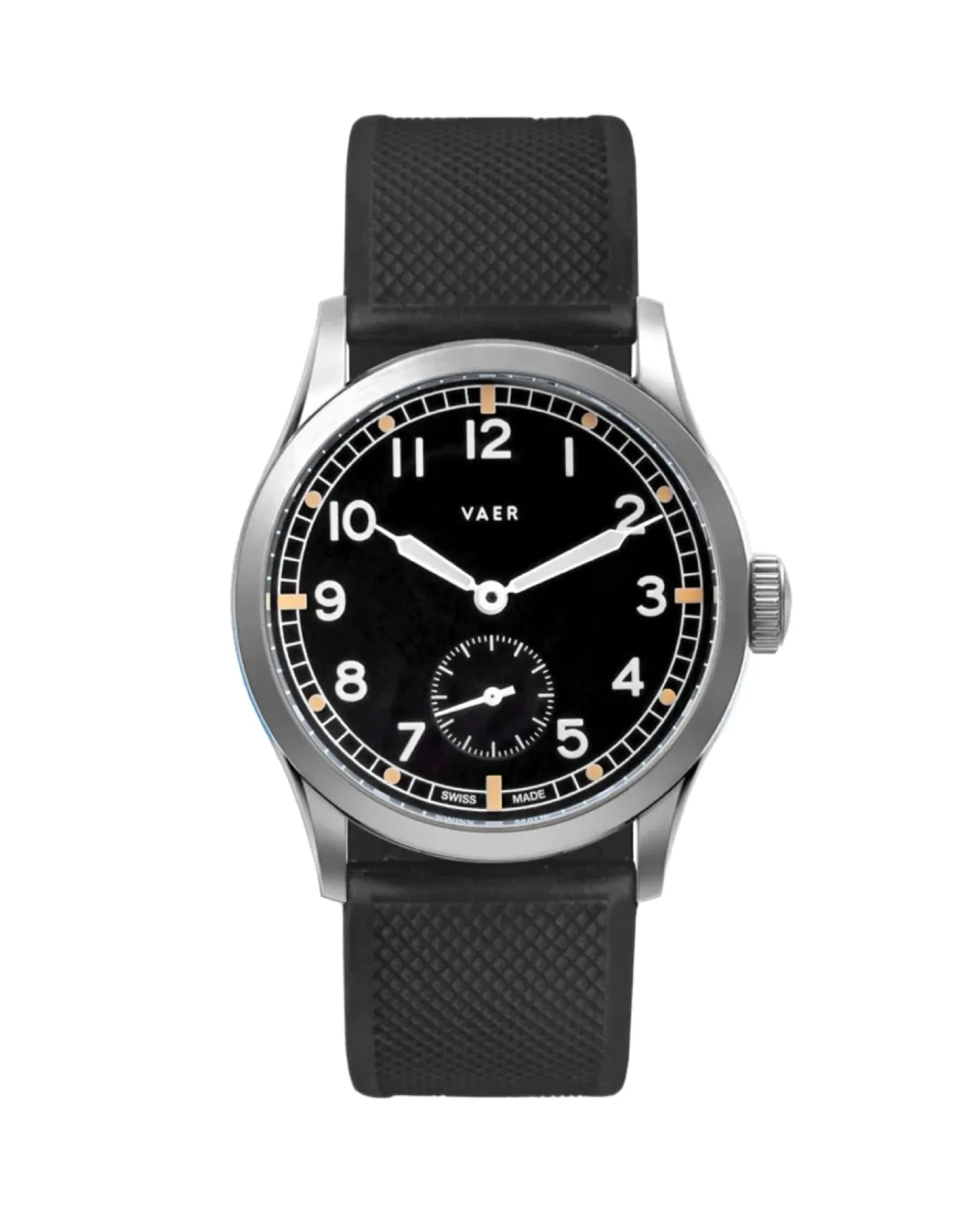A special-edition homage to a military timekeeping icon. Combining the prestige of European luxury with the everyday utility of the VAER brand. Includes both Olive and Black Silicone straps.